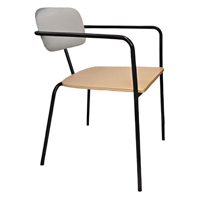 Material: Primera foto: tapizada en eco cuero gris verdoso. Base de hierro negro. Segunda foto: respaldo tapizado en eco cuero gris, asiento de madera haya natural. Base de hierro negro.